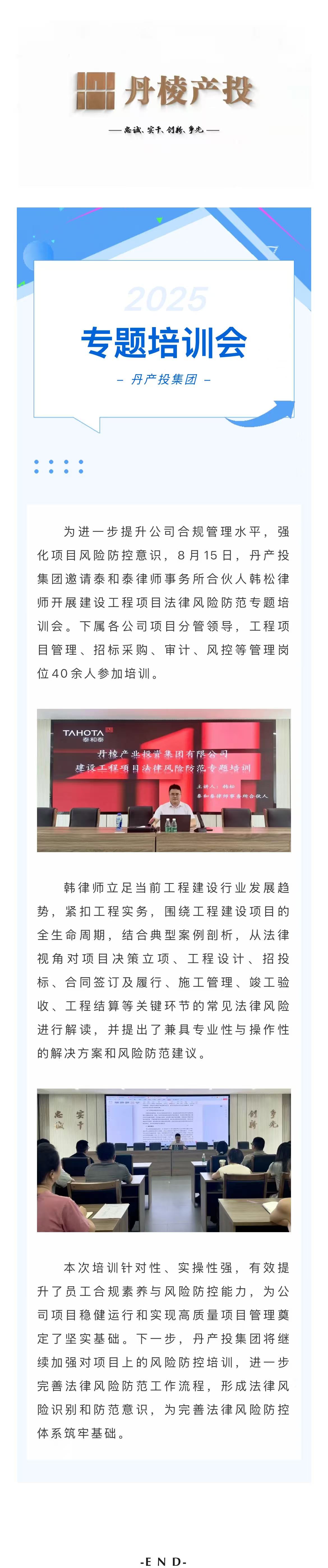 丹產(chǎn)投集團(tuán)開(kāi)展建設(shè)工程項(xiàng)目法律風(fēng)險(xiǎn)防范專題培訓(xùn)會(huì)